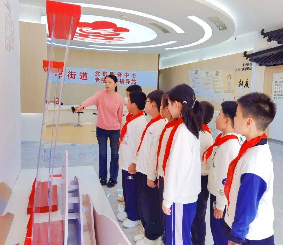 在辅导员安老师的带领下,队员前往无锡市东亭街道东城社区党群服务中心开展劳动教育实践活动。